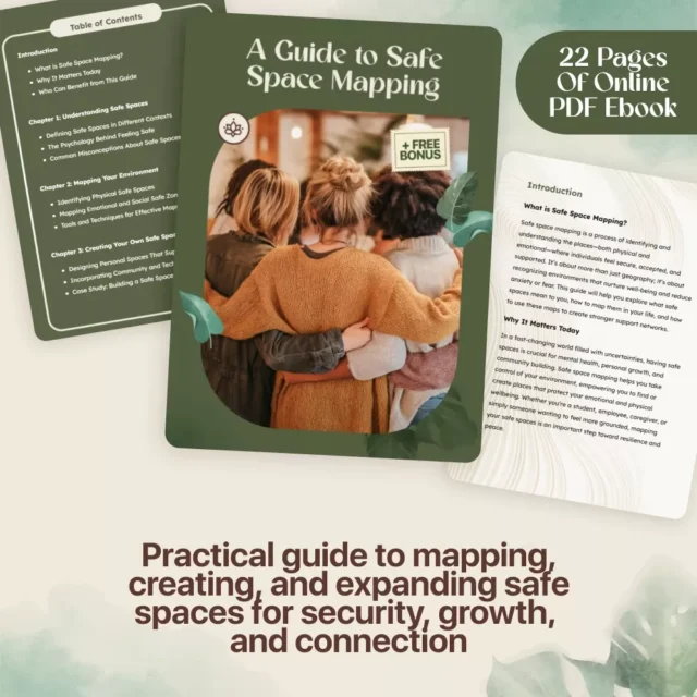 Find clarity, peace, and empowerment with A Guide to Safe Space Mapping — a digital ebook designed to help you understand, create, and expand safe spaces in every area of life. Whether you’re looking to build a sense of safety at home, in your community, or at work, this guide offers practical tools, insights, and real-life examples to make safe space mapping simple and actionable. With easy-to-follow steps and helpful strategies, this resource will guide you through the process of identifying, designing, and nurturing safe spaces that truly support your well-being.