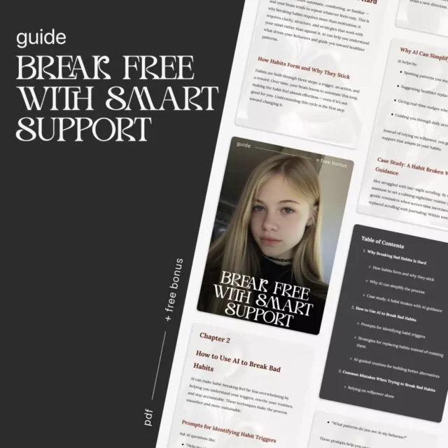 Break Free With Smart Support bridges behavioral psychology with cutting-edge tools, offering a refreshing and realistic approach to habit change. Instead of one-size-fits-all methods, it teaches you personalized ways to get AI help for breaking bad habits so your growth feels natural, supported, and sustainable.