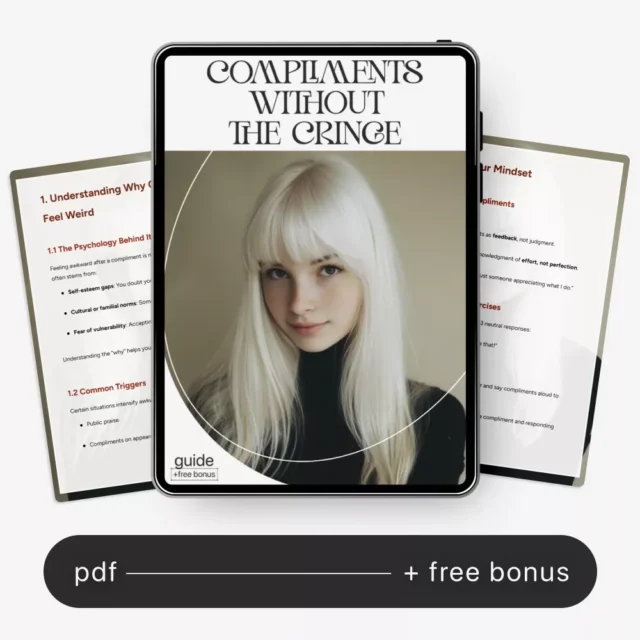 This guide is perfect for anyone who struggles with self-image, people-pleasers who brush off compliments, or anyone on a journey to boost self-esteem and emotional confidence. If you’ve ever wondered how to stop feeling weird about compliments, this is your roadmap to genuine comfort and connection.
