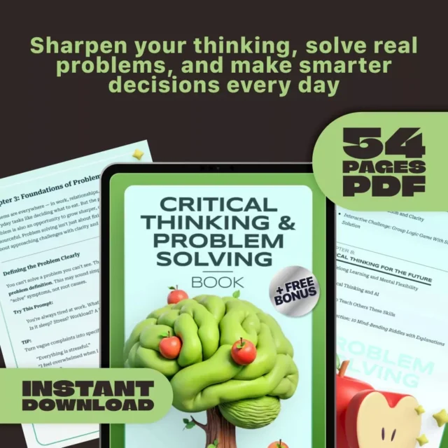 Whether you’re looking to improve everyday decisions, sharpen your mental focus, or handle complex challenges at work or home, the Critical Thinking & Problem Solving Book is your all-in-one digital guide. Packed with real-world scenarios, logic puzzles, step-by-step models, and brain-boosting activities, this ebook helps you break through mental blocks, think more clearly, and make smarter choices—consistently.