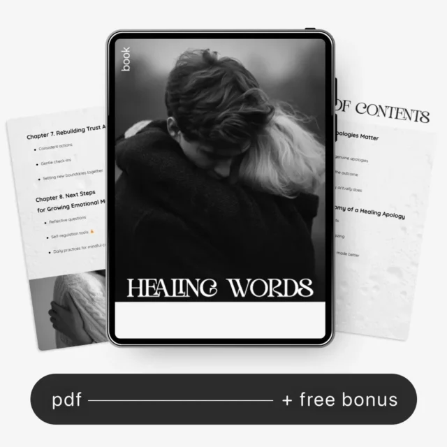 Discover a transformative digital guide designed to help you communicate with compassion, rebuild trust, and repair emotional disconnect. Healing Words is a powerful, human-centered resource that walks you through what it really takes to make a genuine, healing apology—one that goes beyond simple phrases and creates space for true understanding and emotional reconnection. Whether you’re navigating a tender moment with a partner, healing a friendship, or restoring harmony at work or within your family, this downloadable guide gives you the clarity and tools to express yourself with honesty, empathy, and intention.