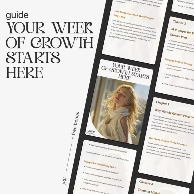 Growth begins with clarity. Download Your Week of Growth Starts Here today and discover how AI prompts for creating a weekly growth plan can help you plan smarter, stay focused, and make every week count.